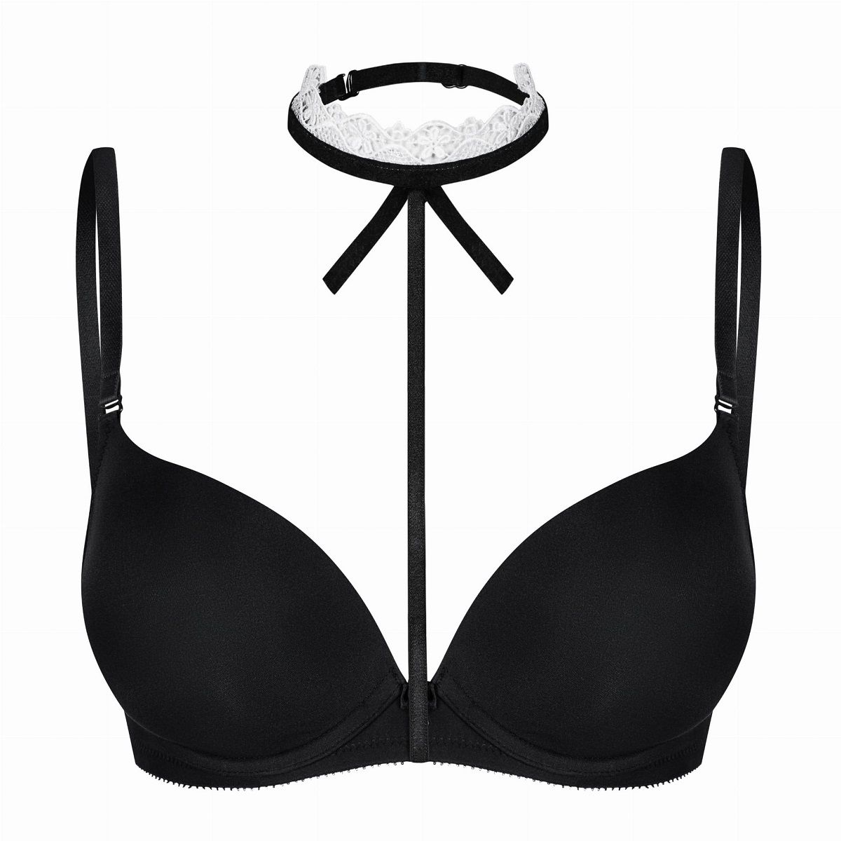 Бретель декоративная из ткани с регулятором длины, крючки металлические. Элегантное и эффектное колье, аккуратно выполненное из черной ленты и тонкого белого кружева,