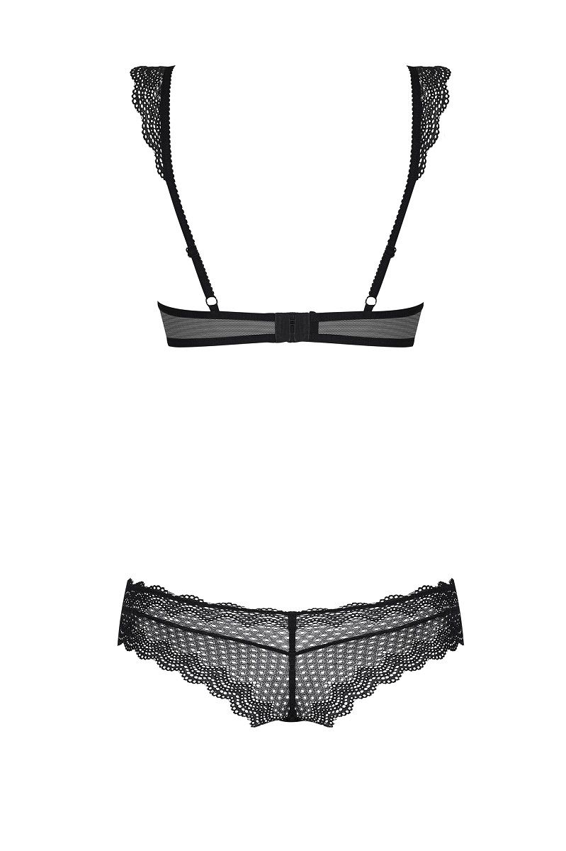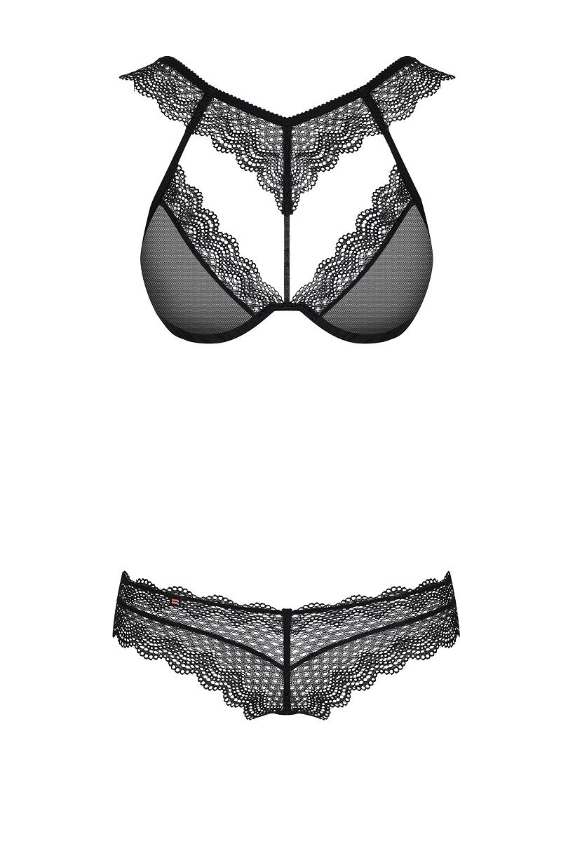 Комплект белья выполнен из эластичной сеточки в сочетании с кружевом. В комплекте: лиф, трусики.