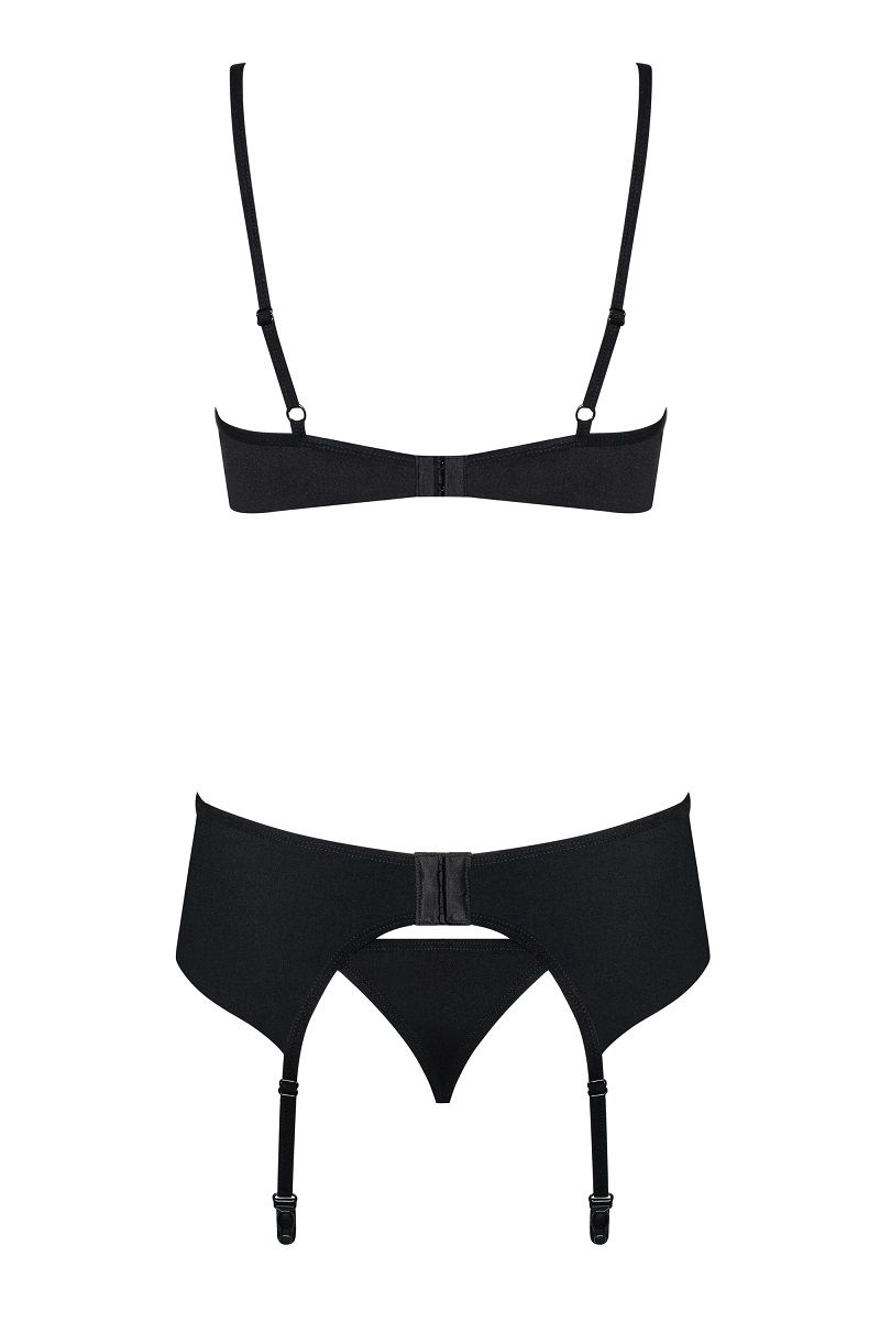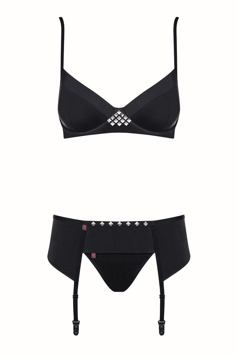 Комплект Gretia с поясом для чулок и декоративными элементами. В комплекте: бюстгальтер, трусики-стринги, пояс с подвязками.