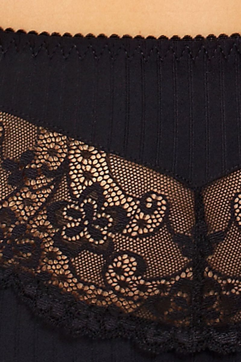 Комплект Zoja в тонкую полоску Zoja с изысканным цветочным кружевом. В комплекте: бюстгальтер, трусики-стринги, пояс.