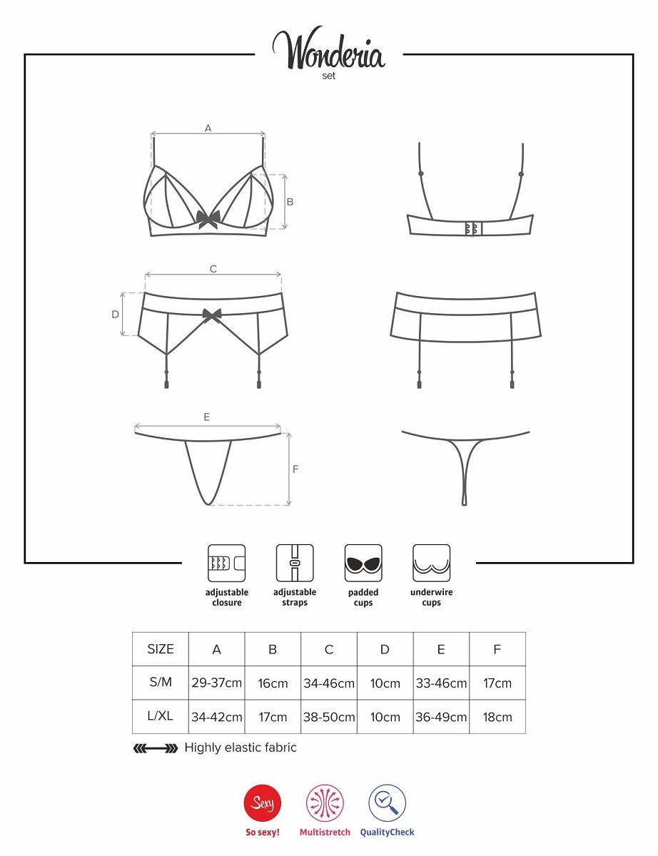 Сексуальный комплект Wonderia из 2 предметов: лифа на косточках, трусиков-стрингов и пояса с пажами для чулок. В комплекте: лиф, трусики-стринги, пояс.