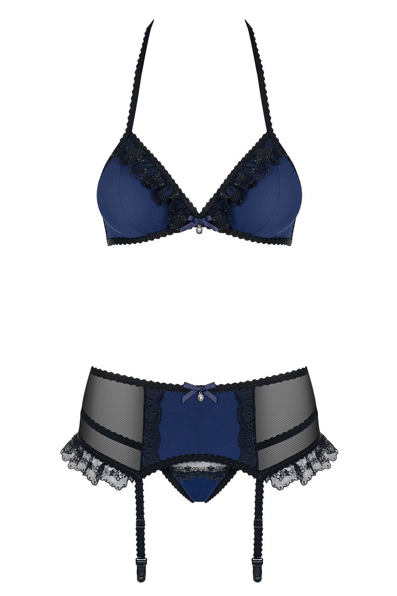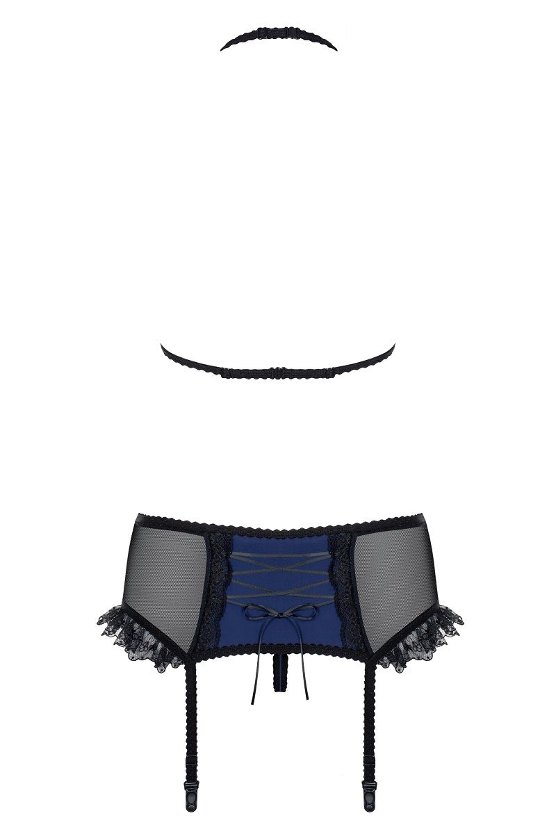 Соблазнительный комплект Amazing из 3 предметов. Двухцветный, с регулируемыми бретелями. Сзади на поясе декоративная шнуровка. Оторочка кружевом. В комплекте: лиф, трусики-стринги, пояс с пажами.