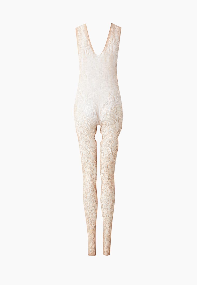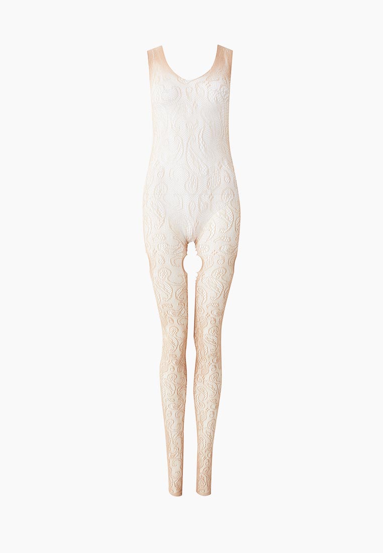 Бежевый ажурный комбинезон с разрезами на бедрах. C интимным доступом.