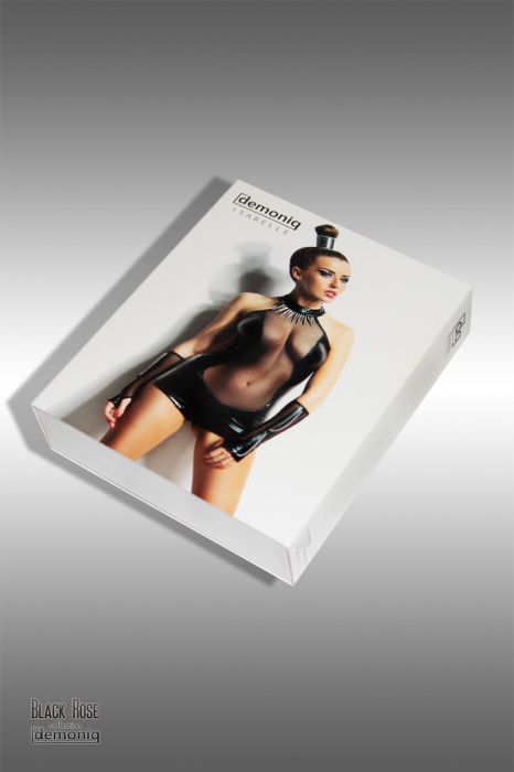 Вы яркая и эффектная? Хотите подчеркнуть свою внешность? Вы искали и так и не смогли ничего найти? Очевидно, потому, что ... вы еще не встретили Isabelle Demoniq. Этот комплект удовлетворит даже самые изысканные потребности и ожидания. Боди из черной, эластичной ткани с мокрым эффектом и вставкой из мягкого шифона, визуально стройнит силуэт. Глянцевый черный цвет подчеркивает линию бедер, а прозрачная вставка привлекает внимание к груди и животу. Черный материал под «кожу» на задней части боди подчеркнет ягодицы, а съемная металлическая серебристая цепочка на линии пояса добавит ещё больше очарования. Благодаря эластичному материалу, застежке на спине и креплению на шее боди полностью облегает тело. Перчатки, изготовленные из эластичной сетки, в сочетании с черным материалом с мокрым эффектом, добавят яркости и эффектности Вашему образу. В комплекте: боди, перчатки.