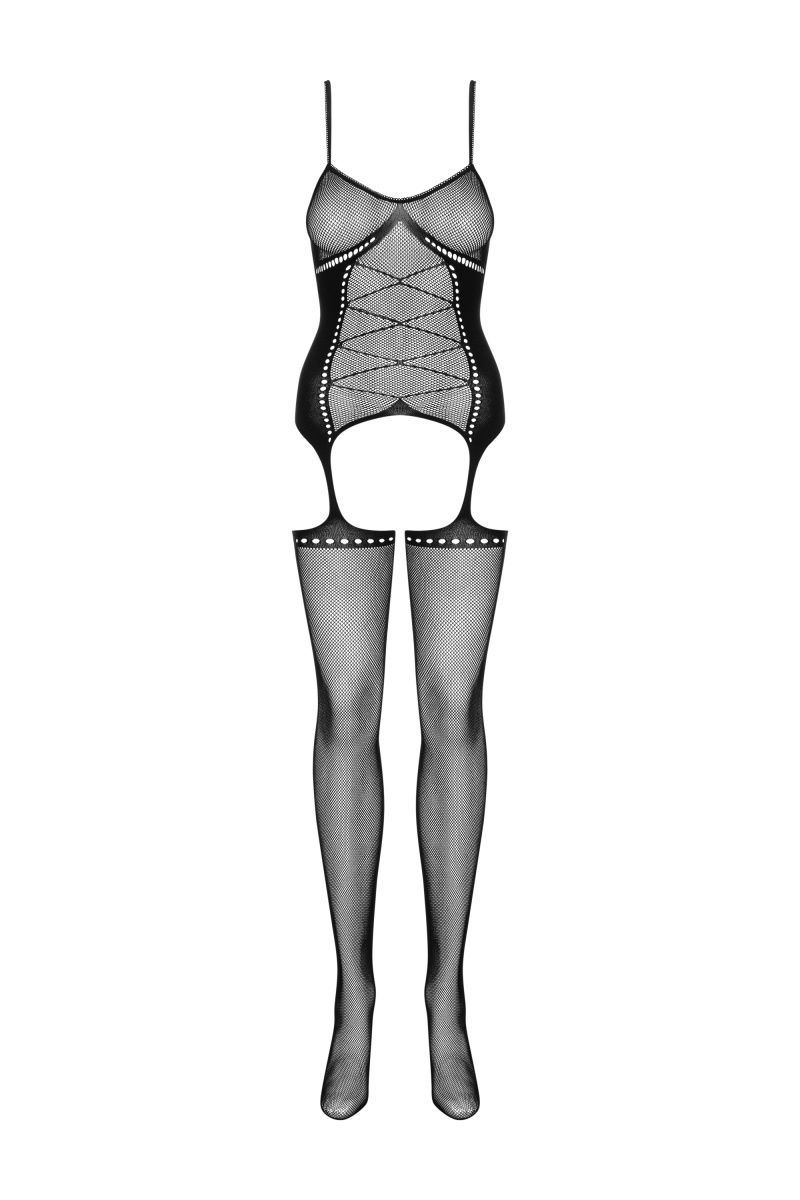 Женский полупрозрачный кэтсьюит с имитацией шнуровки и чулок.