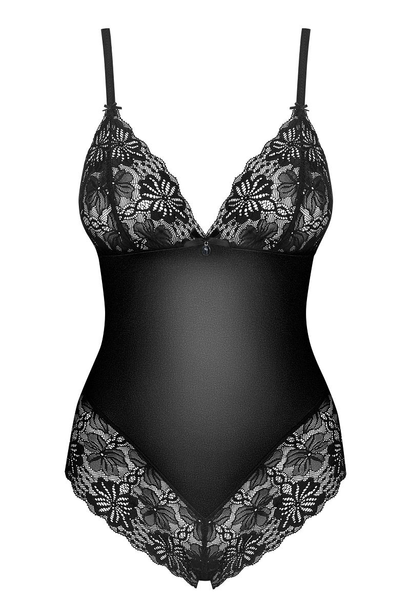 Элегантное боди из стрейч-атласного материала, украшено кружевом. Низ боди на застежке на крючке.