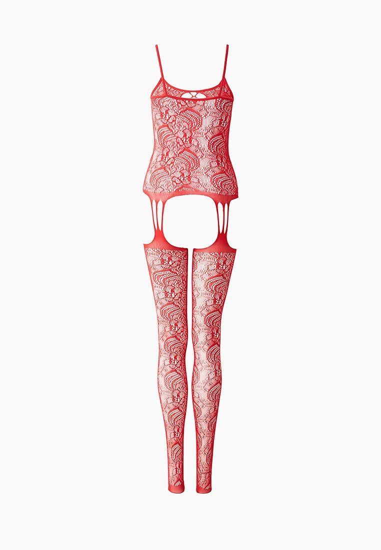 Красный ажурный комбинезон с имитацией шнуровки на груди. Трусики не входят в комплект!