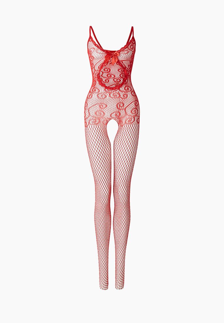 Красный ажурный комбинезон с вырезом-капелькой под грудью. С интимным доступом.