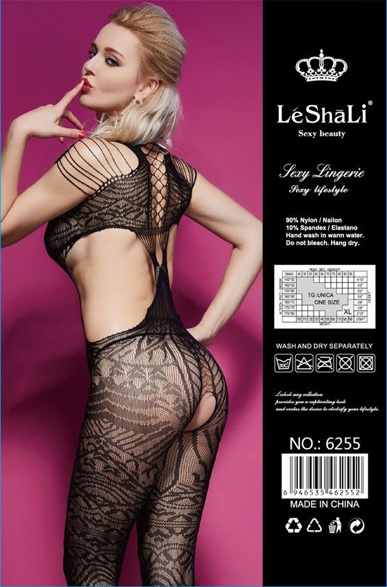 Сексуальный комбинезон выполнен в оригинальном стиле. Имитация топа с замысловатым узором и сложным плетением вокруг шеи, на спине и на животе рождает откровенные фантазии. Кружевной узор в виде лепестка в интимной зоне акцентирует внимание на самом главном. Множественные тоненькие бретельки подчеркивают красоту линии плеч и гармонично переводят взгляд на роскошную грудь. Отличный вариант наряда для романтической прелюдии. Интимный вырез делает этот костюм идеальным для сексуальных игр с Вашим партнером. Трусики не входят в комплект!