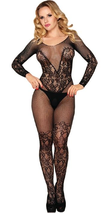 Женский комбинезон с длинным рукавом и цветочным орнаментом. Пикантности добавляет интимный доступ. Трусики в комплект не входят!