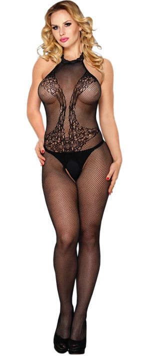 Женский комбинезон в мелкую сеточку. Комбинезон с цветочным орнаментом, с интимным доступом. Трусики в комплект не входят!