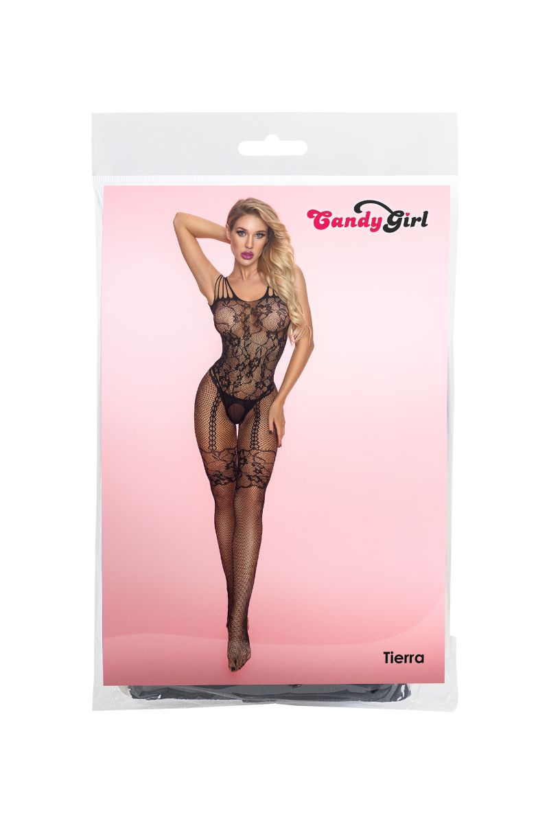 Эластичный бесшовный костюм-сетка Candy Girl Tierra приносит страсть в сексуальные отношения. В этом комплекте из комбинезона с интимным вырезом, открывающим доступ к пикантным зонам, и Т-стринг ты продемонстрируешь партнеру все прелести и изгибы тела. Используя комбинезон без стринг ты покажешь, что готова к сексуальным играм! Прозрачное ажурное плетение создает иллюзию одежды - имитирует боди, пажи и кружевную резинку чулок - но сохраняет ощущение обнаженного тела, украшенного причудливым орнаментом. Усиленные мыски чулок добавляют удобства во время использования. Эластичность материала не сковывает движения и позволяет двигаться так, как хочется. В комплекте: комбинезон, трусики-стринги.