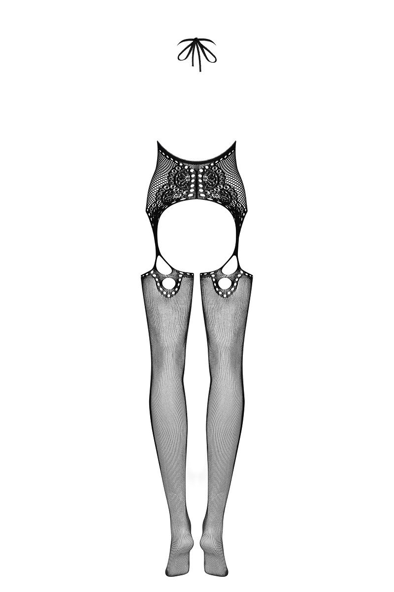 Оригинальный комбинезон-сетка с завязками на шее и открытыми бёдрами.