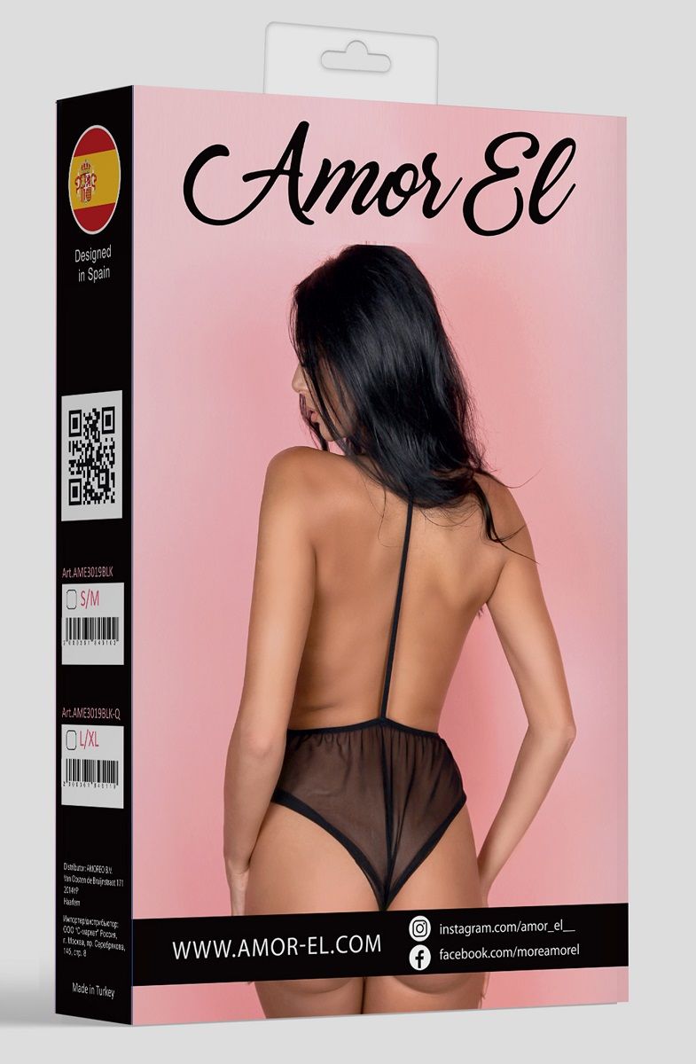 Прозрачный боди с открытой спиной и завязками на шее.