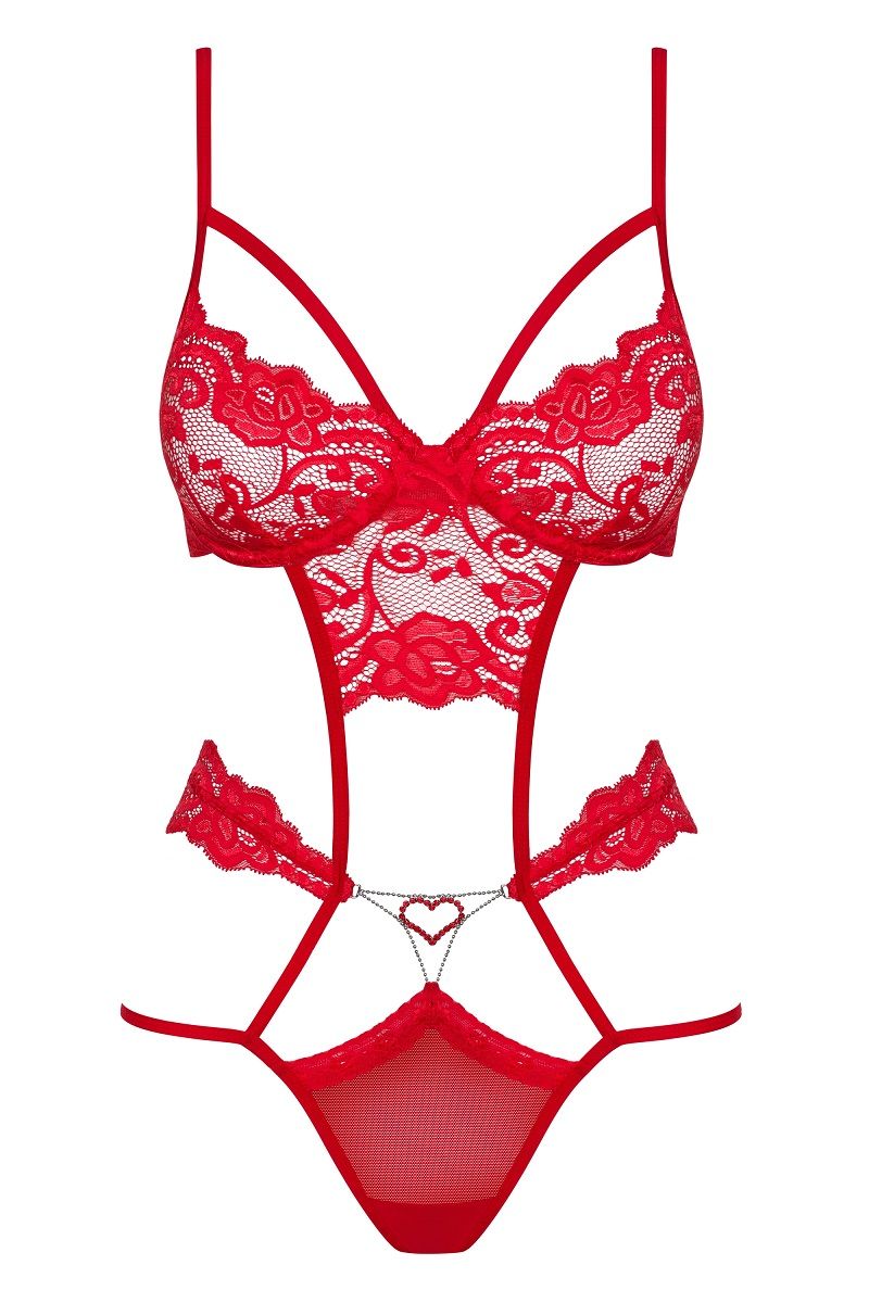 Роскошное кружевное тедди с украшением на животике в виде сердца.