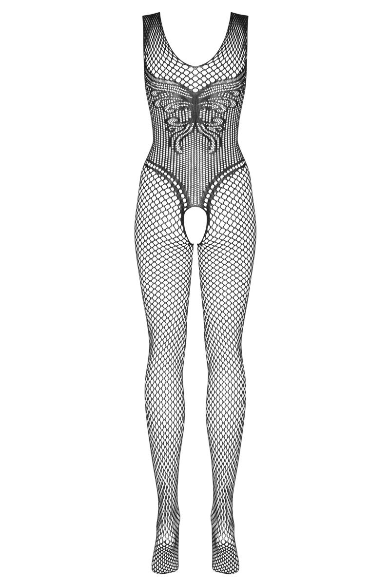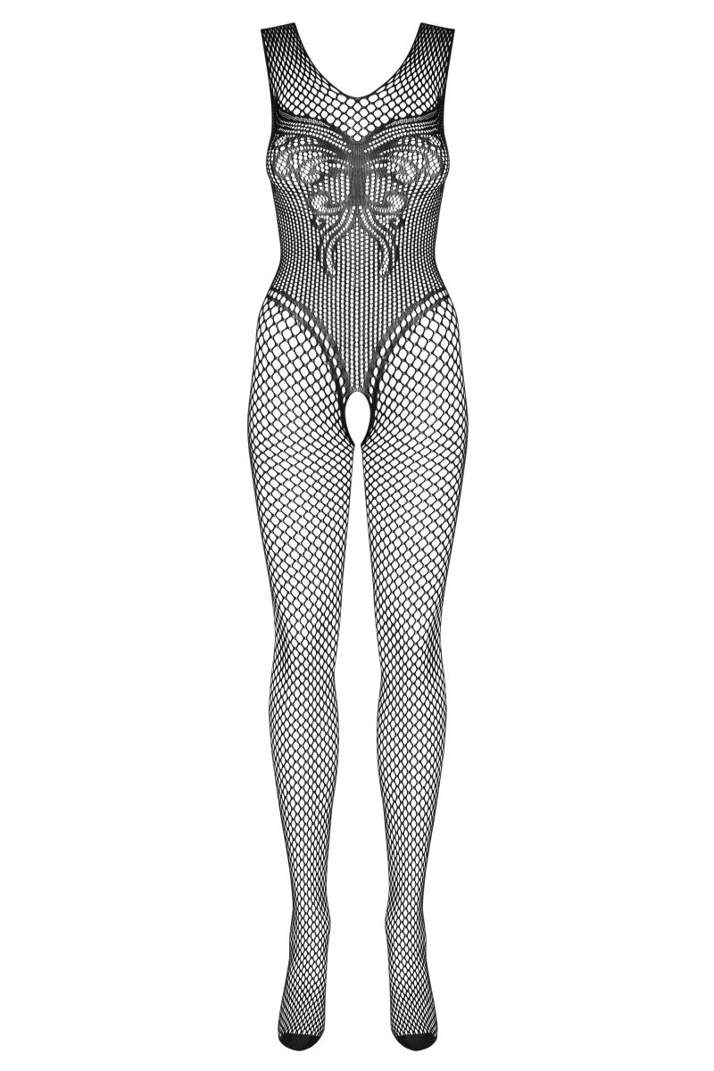 Пикантный комбинезон чулок, выполненный плетением из сетки двух разных размеров. Имитирует боди, спереди и сзади украшенное женственным узором.