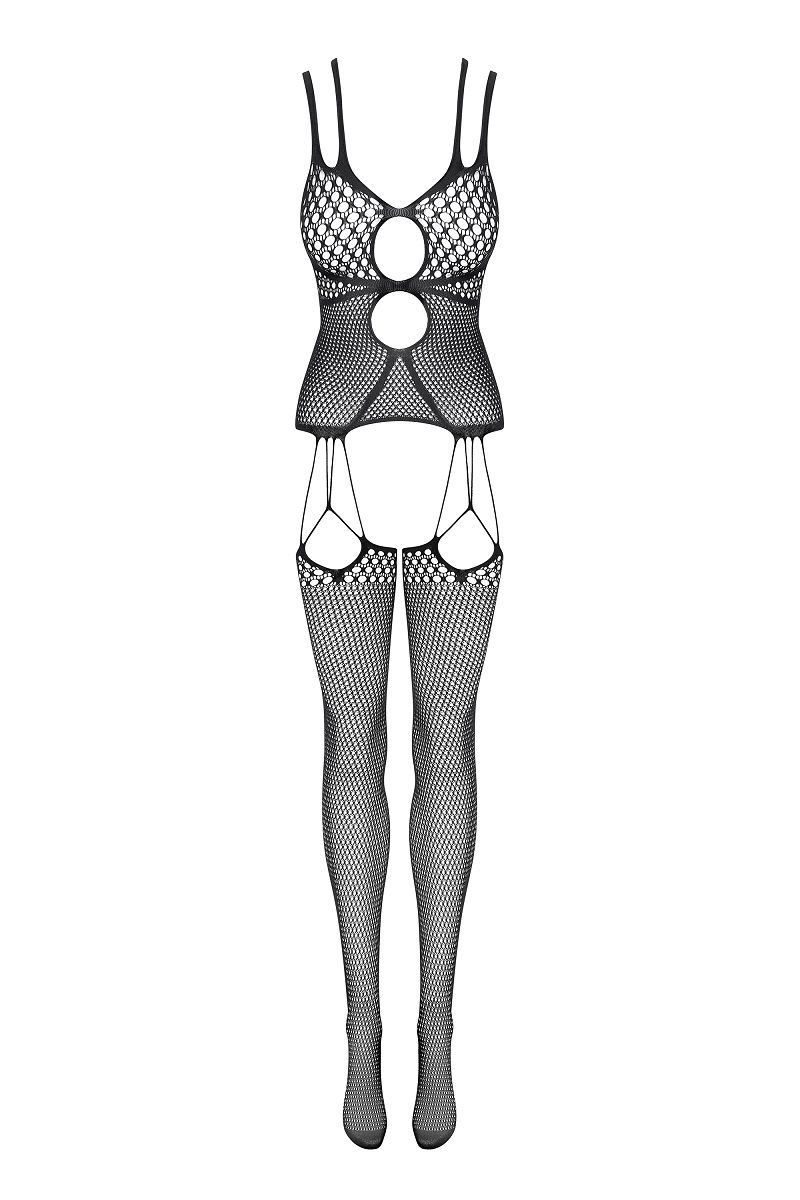 Сексапильный комбинезон с круглыми ячейками на лифе и чулках.