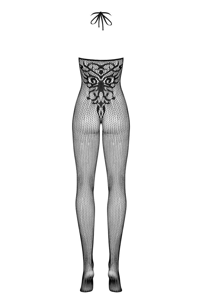 Кэтсьюит интересного плетения с рисунком на теле, имитирующим татуировки. Рисунком покрыта грудь, живот, спина, а также голени. В области бикини - вырез.