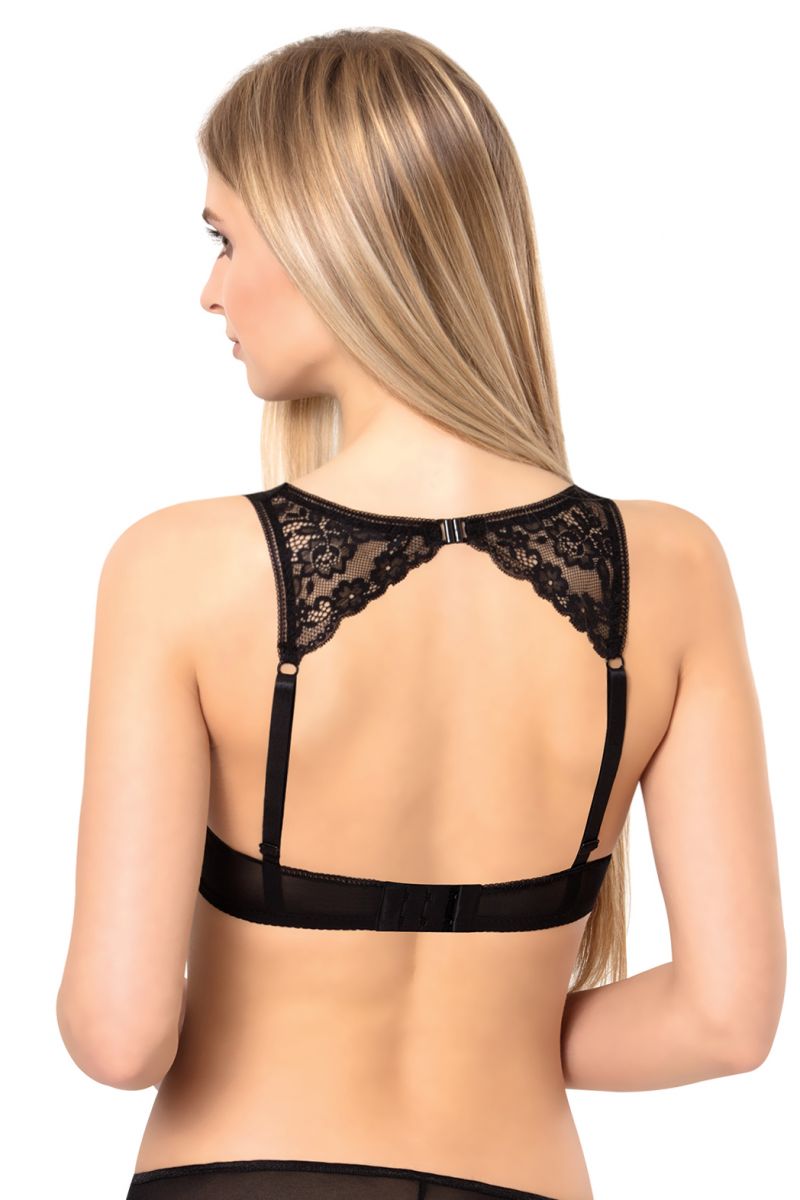 Эротический бралетт выполнен из мягкого кружева с цветочным орнаментом и лёгкой сетки. Этот бралетт подчеркнёт красоту Вашей груди, а пикантные разрезы в области сосков добавят игривости. Двухрядная застёжка обеспечит надёжную посадку, а широкие кружевные бретели с мягким краем - комфорт. Невероятно женственные элегантные крылья на спине завершат Ваш образ, делая его соблазнительным и таинственным.