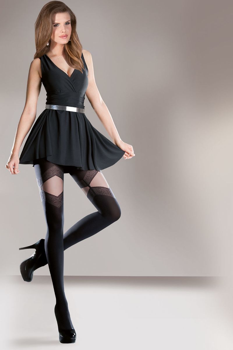 Черные фантазийные колготки с имитацией чулок Melia.