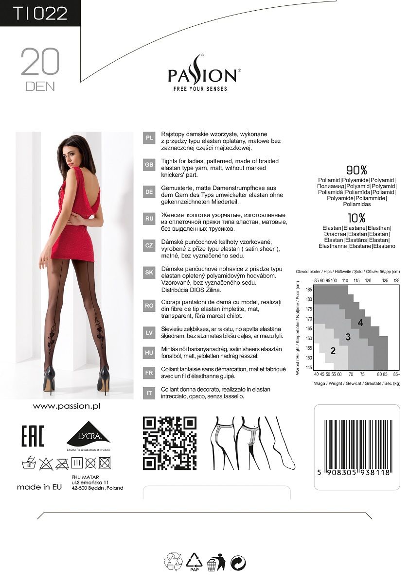 Женские колготки узорчатые, изготовленные из оплеточной пряжи типа эластан, матовые, без выделенных трусиков.