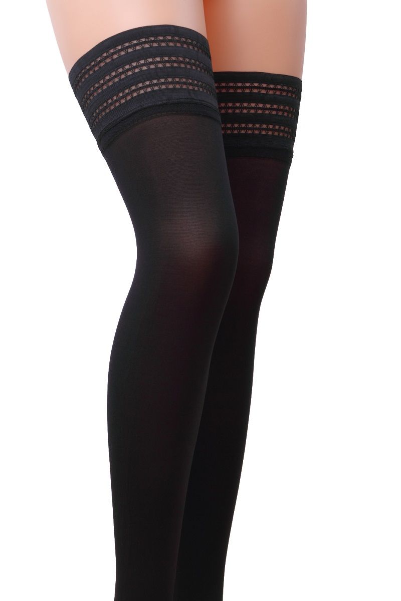 Плотные чулки с полосатой резинкой на силиконовой основе. Плотность — 80 DEN.