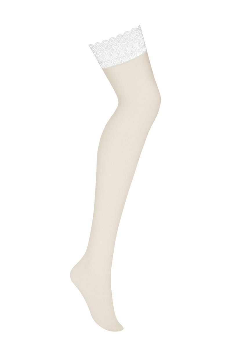 Телесные чулки с белым широким кружевом, без силикона.