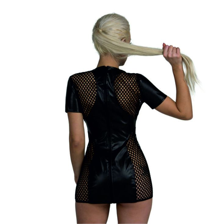 Сексуальное платье Ника выполнено из гладкого материала, напоминающего кожу с привлекательной крупной сеткой. Самые интимные места на теле остаются прикрыты, что делает это платье идеальным оружием для соблазнения. Платье декорировано крупной эластичной сеткой. Трусики не входят в комплект!