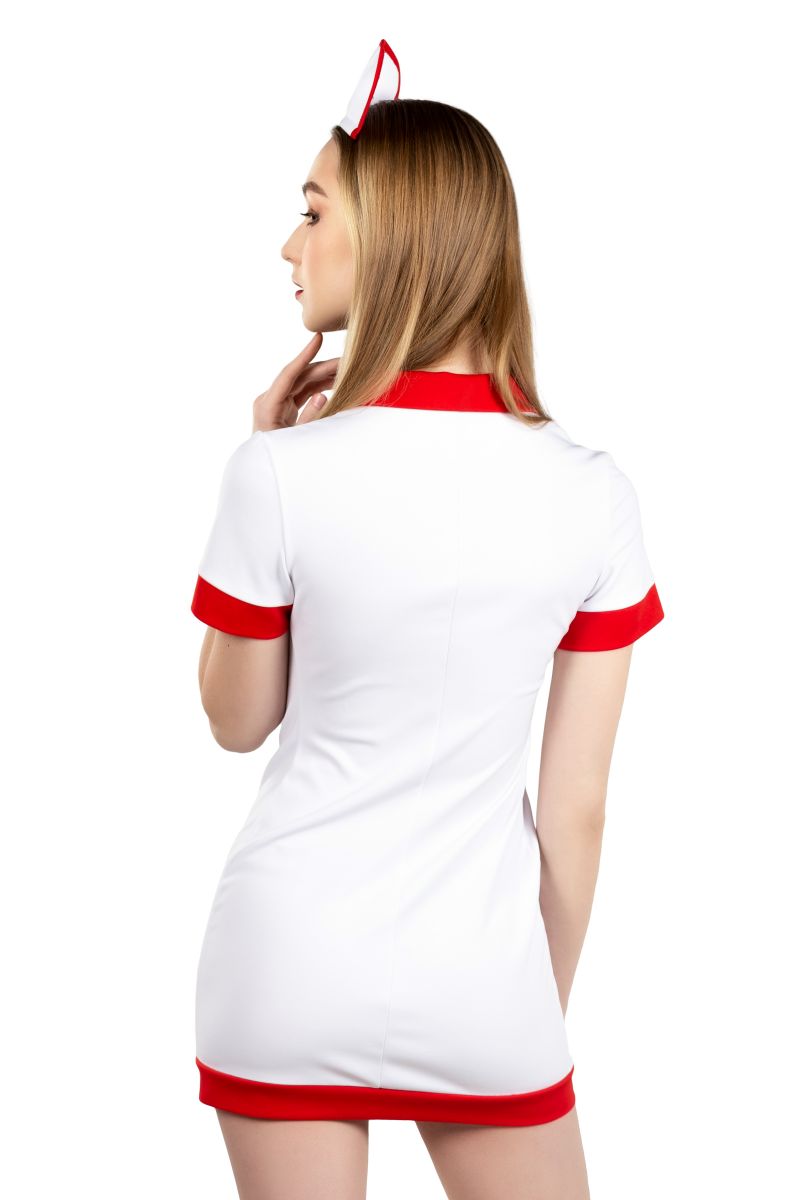 Мечтаете оказать неотложную сексуальную помощь в своих ролевых играх? В костюме страстной медсестры от Impirante вы точно приведете в чувства своего партнера! Обольстительное платье роковой длины изготовлено из качественного полиэстера. Ткань идеально прилегает к телу, и подчеркивает изящные изгибы фигуры. Широкий красный пояс-ремень с пряжкой пикантно подчеркивает талию. Платье удобно одевать и легко расстегивать, благодаря замку-молнии спереди. Возбуждающая глубина декольте приковывает внимание к бюсту. В костюм также входит ободок, который дополняет притягательный образ. Окунитесь в мир новых чувственных эмоций! В комплекте: платье, ободок.