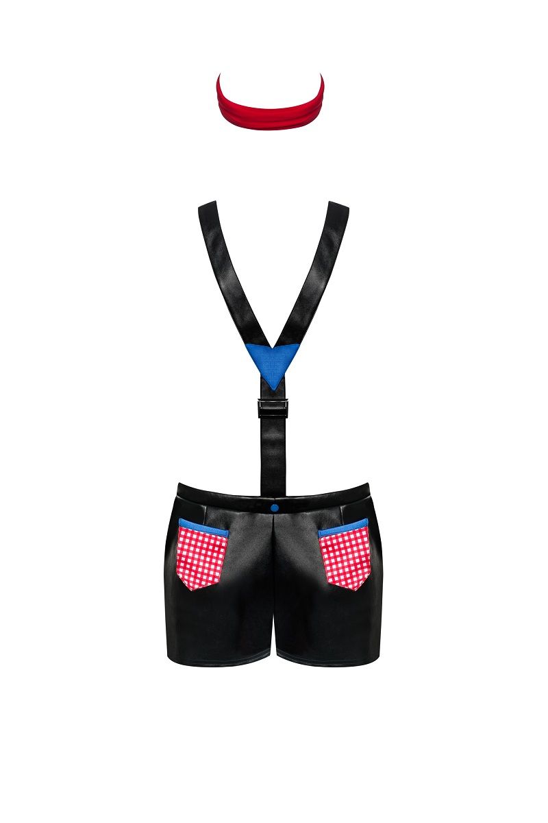 Костюм авто-механика. В комплект входят шорты с бретелями, повязка на голову и красная салфетка. В комплекте: шорты на подтяжках, повязка на голову, салфетка.