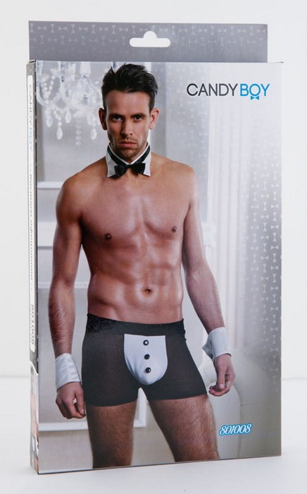 Костюм джентльмена из 4 предметов: трусы-шорты на эластичной резинке, воротник-галстук на застежке-липучке, манжеты на кнопке. В комплекте: шорты, воротник, манжеты.