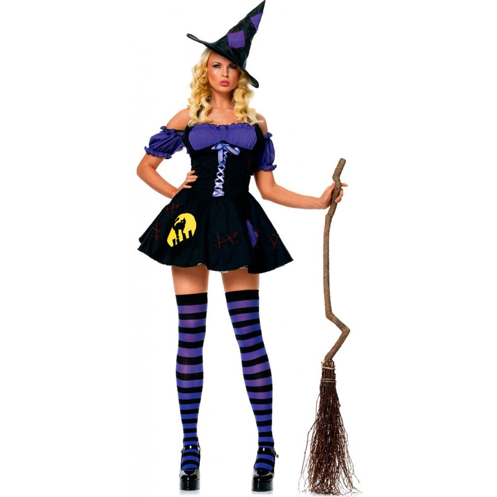 В костюме ночной ведьмочки, подчёркивающем достоинства фигурки, вы не услышите от мужчин слова «нет». К кому бы из них вы ни подошли на вечеринке в честь Хэллоуина и что бы ни попросили, всё будет исполнено в тот же час. Противиться вашим чарам невозможно, поверьте. Да ещё этот загадочный «трах-тибидох»… Костюм состоит из: платья, шляпы