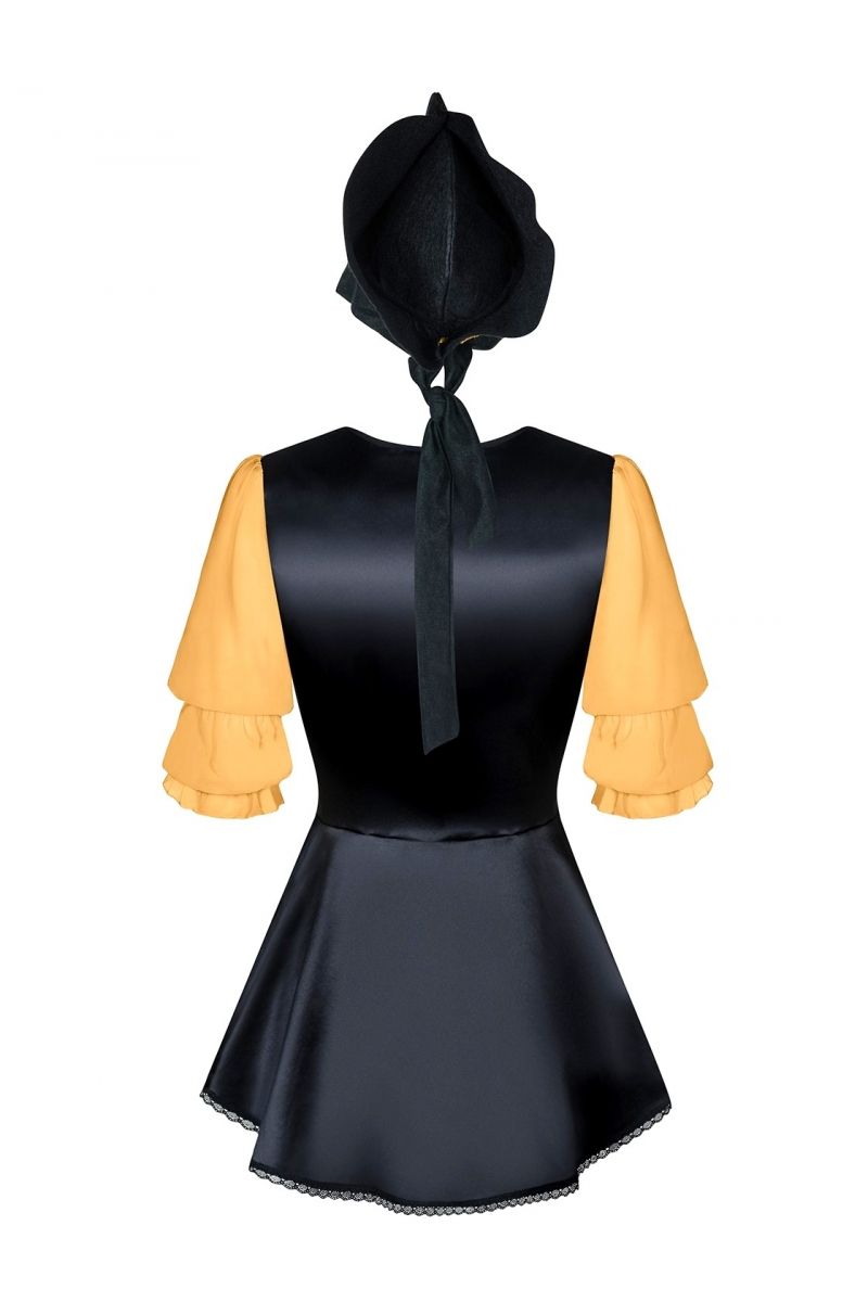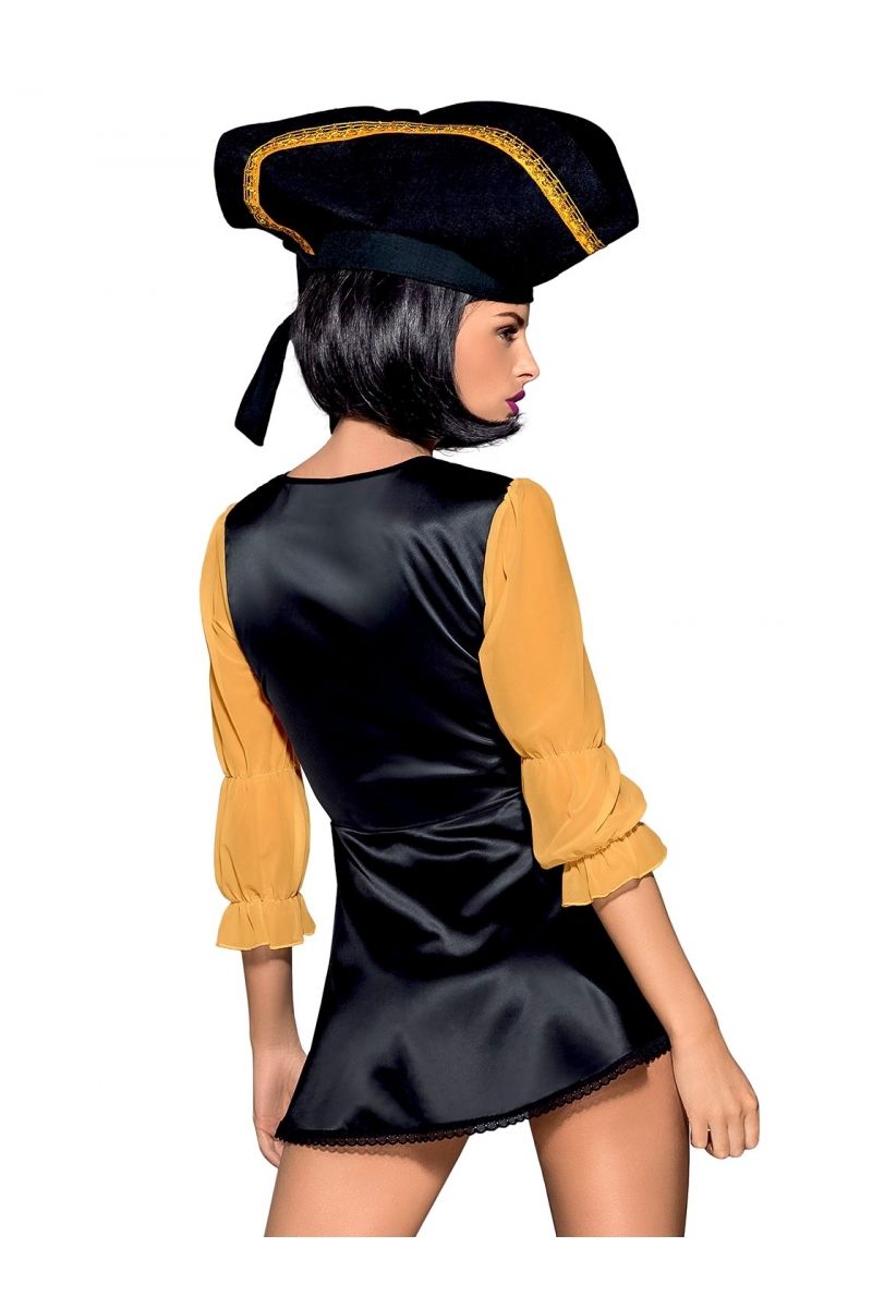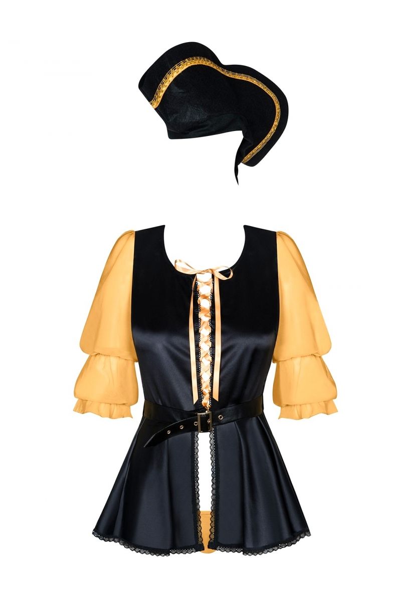 Элегантный костюм пиратки. В комплект входит платье, шляпа с широкими полями и трусики. В комплекте: головной убор, платье, трусики.
