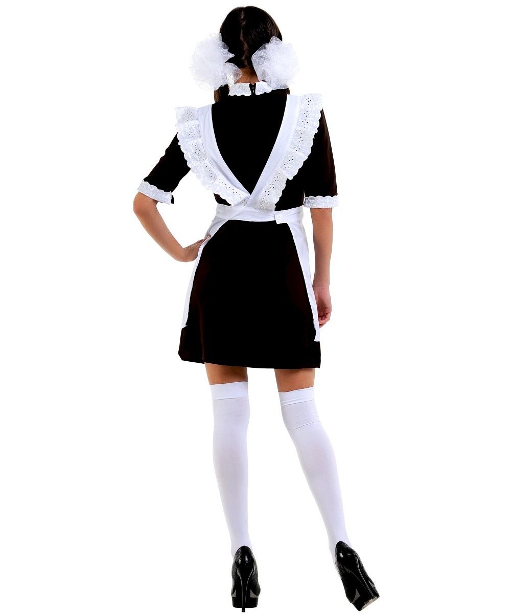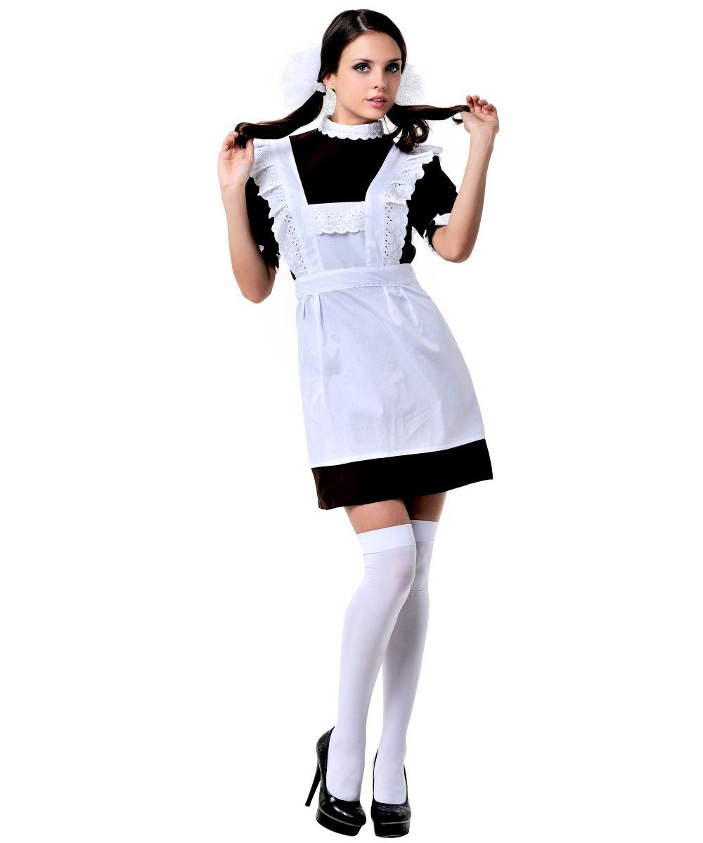 Скромное коричневое платье, нарядный белый фартук… Образ советской школьницы и по прошествии стольких лет не теряет своей актуальности. В таком наряде не затеряться на костюмированной вечеринке. И уж тем более – в собственной спальне. Любой мужчина, увидев любимую в таком неожиданном амплуа, не преминет сказать: «Иванова? Двойку пришла исправлять? Ну, заходи, готовься». Костюм состоит из: платья, фартука.