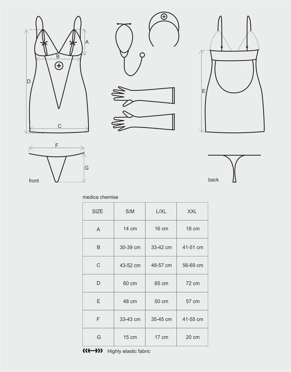 Сексуальный комплект медсестры: платье, трусики, перчатки, стетоскоп и головной убор. В комплекте: платье, трусики-стринги, перчатки, головной убор, стетоскоп.
