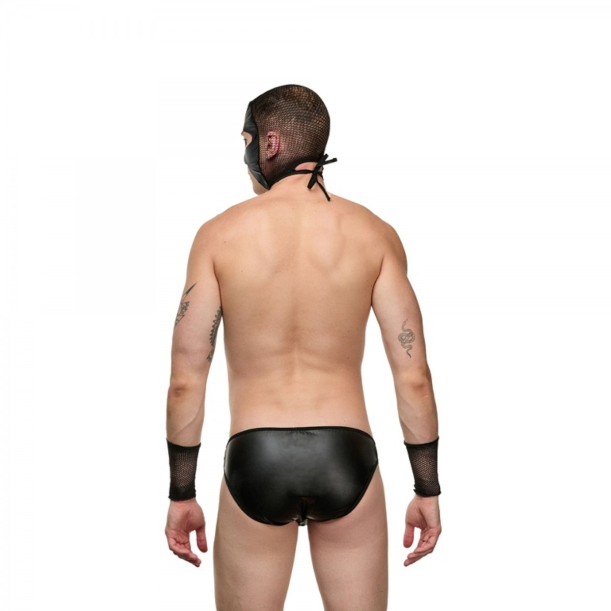 Мужской костюм «Боец». Состоит из 3 предметов: трусов, маски-шлема с прорезями для глаз и рта, нарукавников из сетки. В комплекте: трусы, нарукавники, маска-шлем.