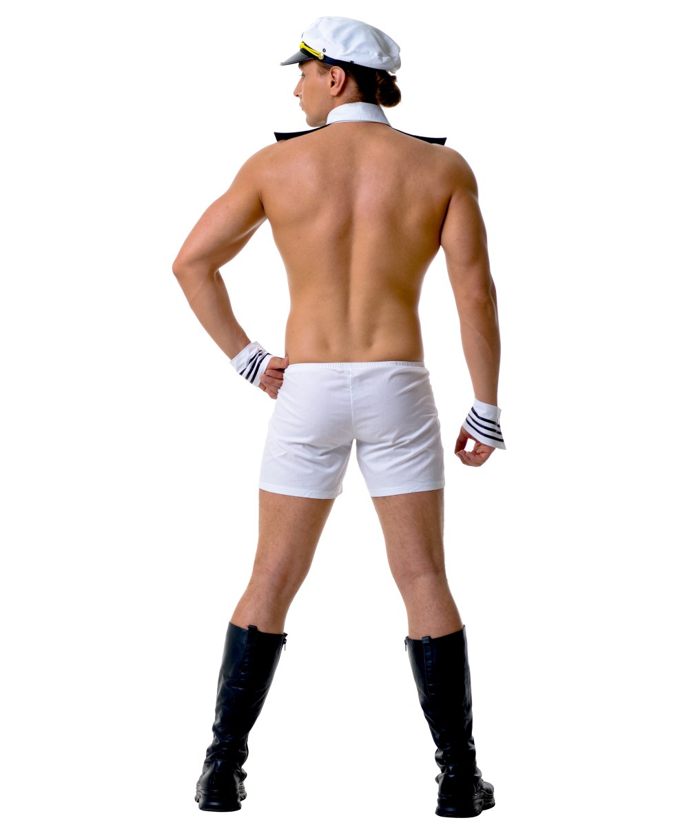 Такому морскому волку женщина никогда не споёт «Эй, моряк, ты слишком долго плавал»… Закалённый ветрами, в откровенной форме белого цвета, он пробуждает желание с первого взгляда. Позвольте ему прикоснуться к себе, и он унесёт вас за собой по волнам наслаждения! Костюм состоит из: головного убора, накладного воротника, галстука, манжет, шорт.