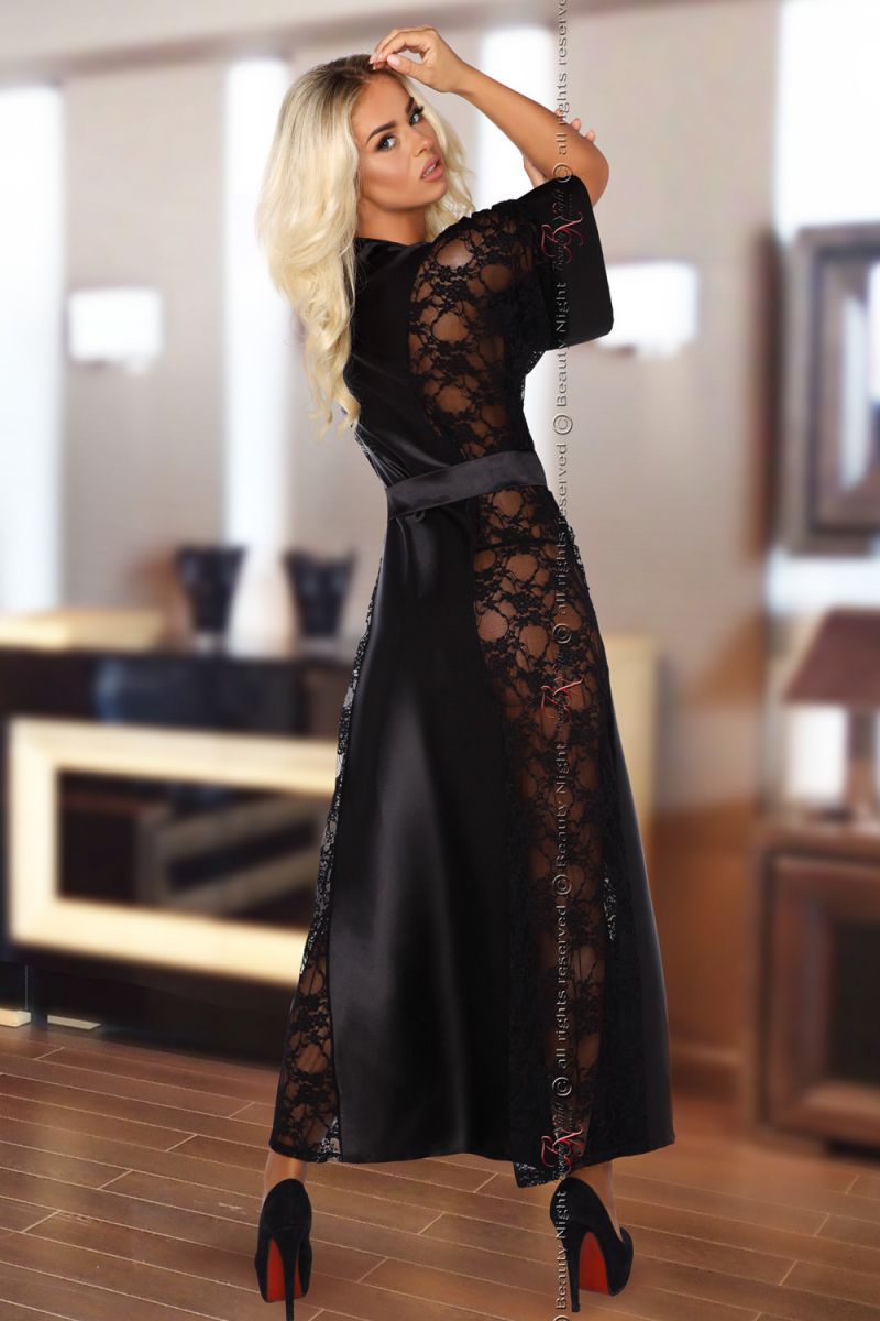 Атласный пеньюар Bouquet с кружевными вставками, в комплекте идут стринги. В комплекте: пеньюар, трусики-стринги.