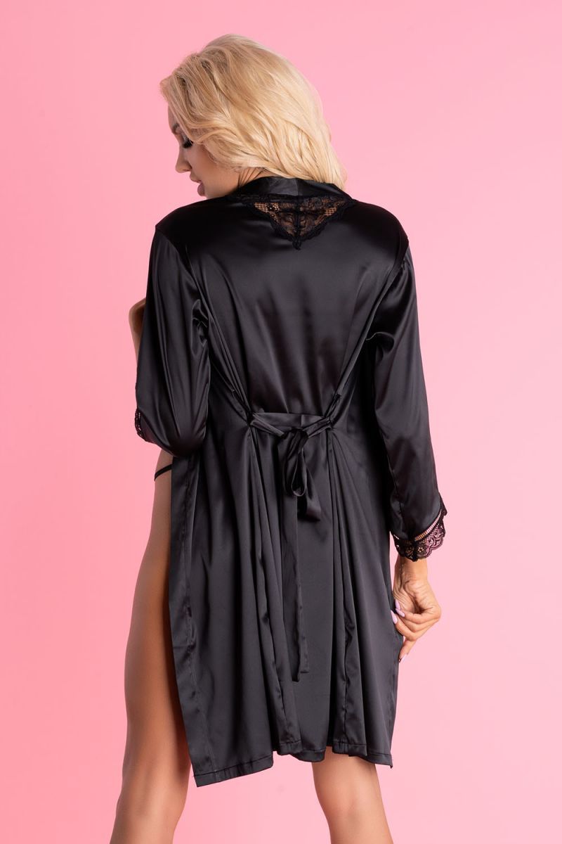 Короткий шелковистый пеньюар Ariladyen с кружевными рукавами. Декорирован кружевом по краю рукава. В комплекте: пеньюар, трусики.