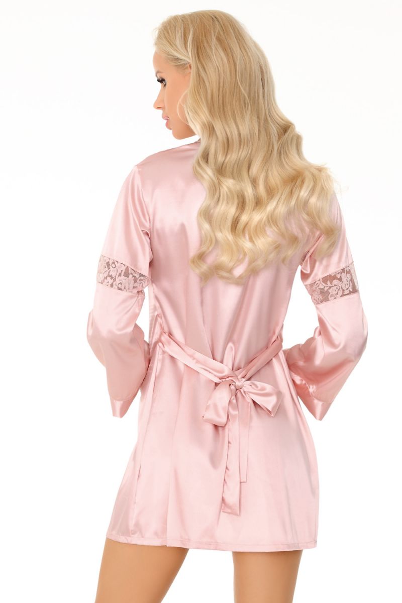 Красиво оформленный комплект белья представляет собой пеньюар, сорочку и трусики. Сорочка с тонкими регулируемыми ремешками, чашки и низ которых украшены нежным кружевом. Пеньюар с длинными рукавами с кружевной вставкой, завязанный на талии поясом. В комплекте: пеньюар, трусики-стринги, сорочка.