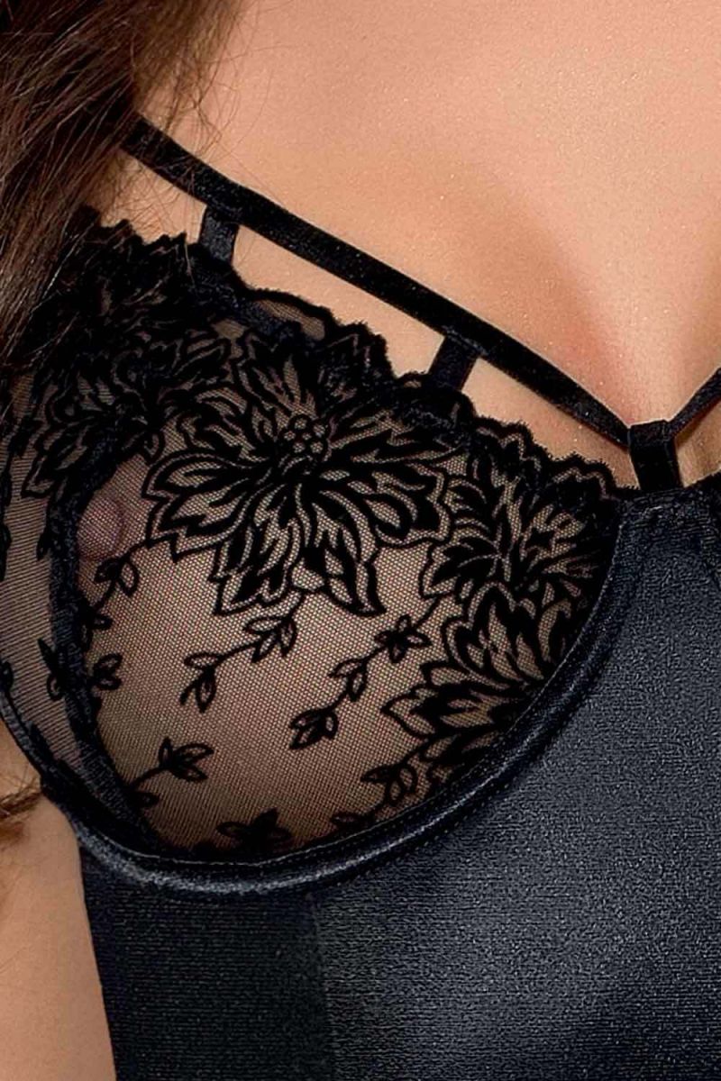 Чувственный корсаж Haya с цветочным узором на кружеве. В комплекте: корсаж, трусики-стринги.