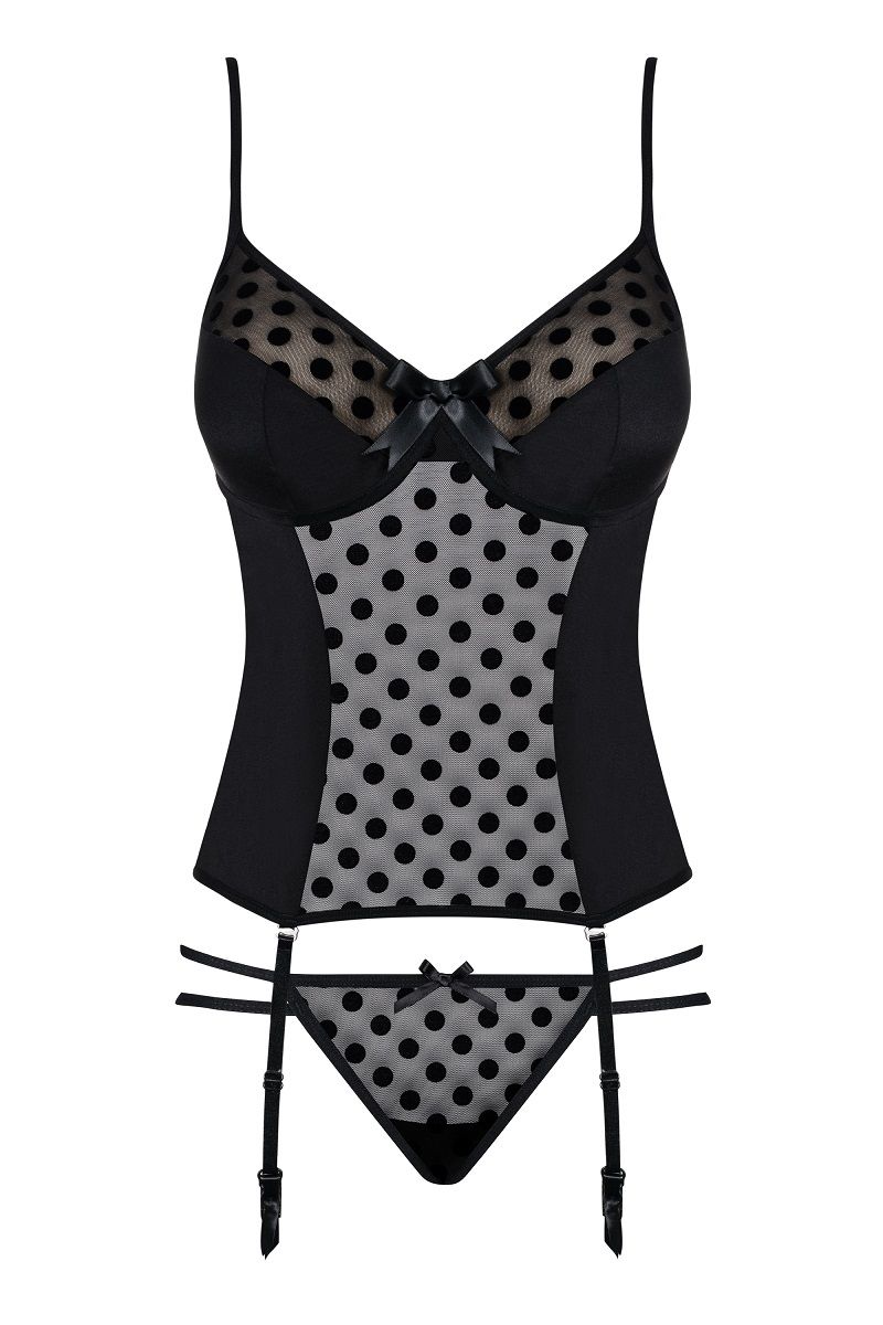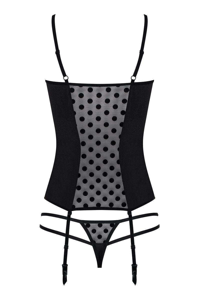 Корсаж в горошек Dotina с бантиком на лифе. Трусики, также в горошек, в комплекте. В комплекте: корсаж, трусики-стринги.