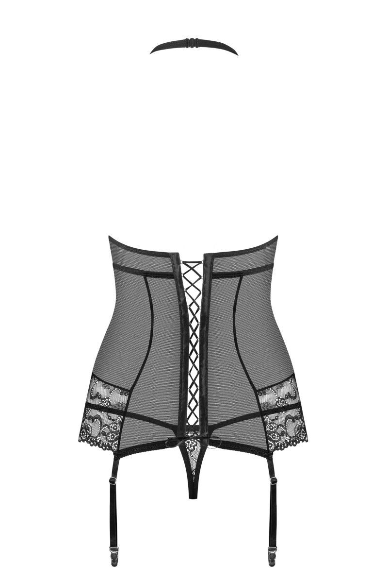 Вы удивитесь, насколько сексуальными вы станете, когда наденете этот роскошный корсаж. Выполненный из полупрозрачного тюля и цветочного кружева, он облегает стан, словно вторая кожа. Дополнительные бретели на лифе подчеркивают пышность бюста. Спинку украшает атласная шнуровка. Бретели и пажи для чулок регулируются. В комплекте: корсаж, трусики-стринги.