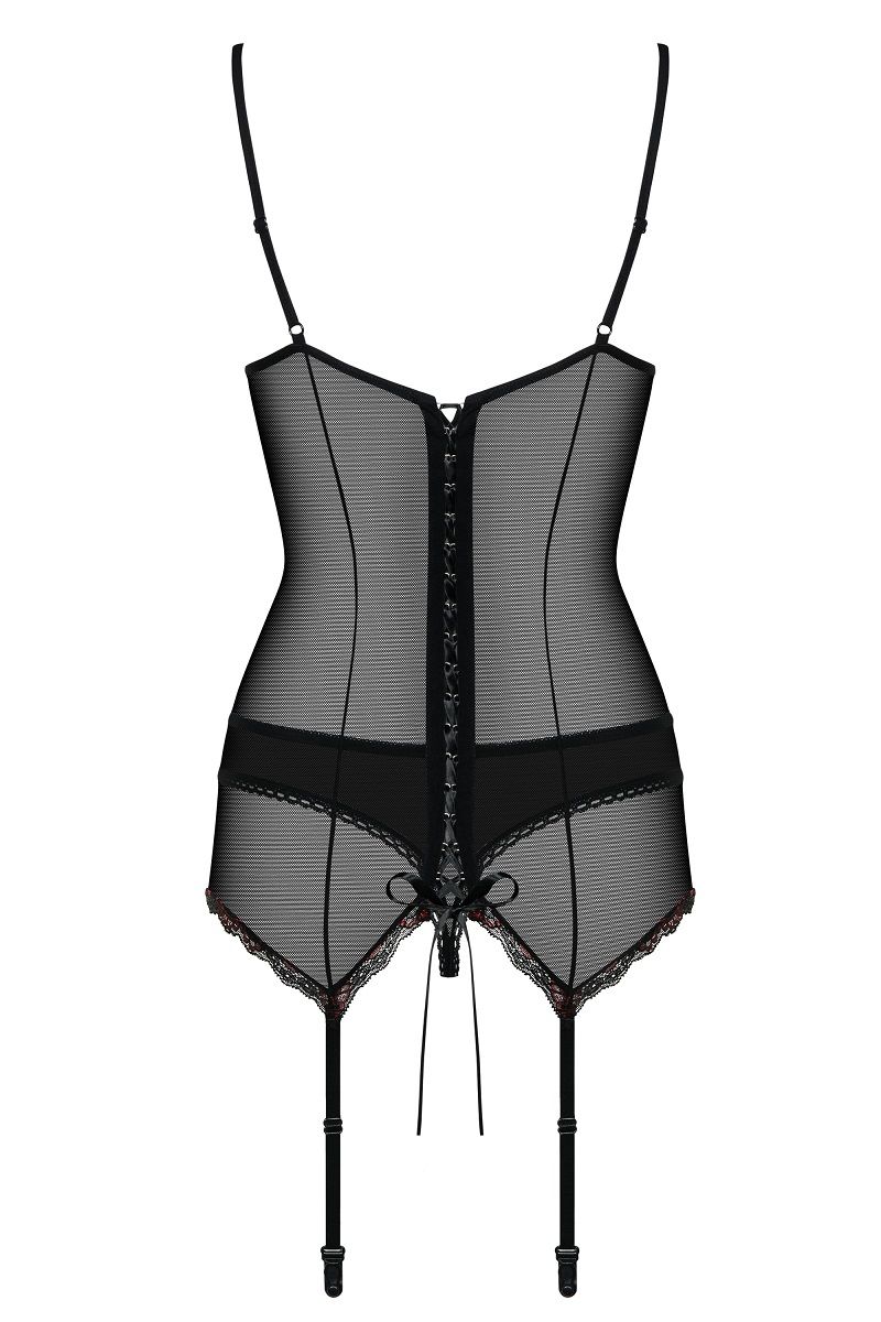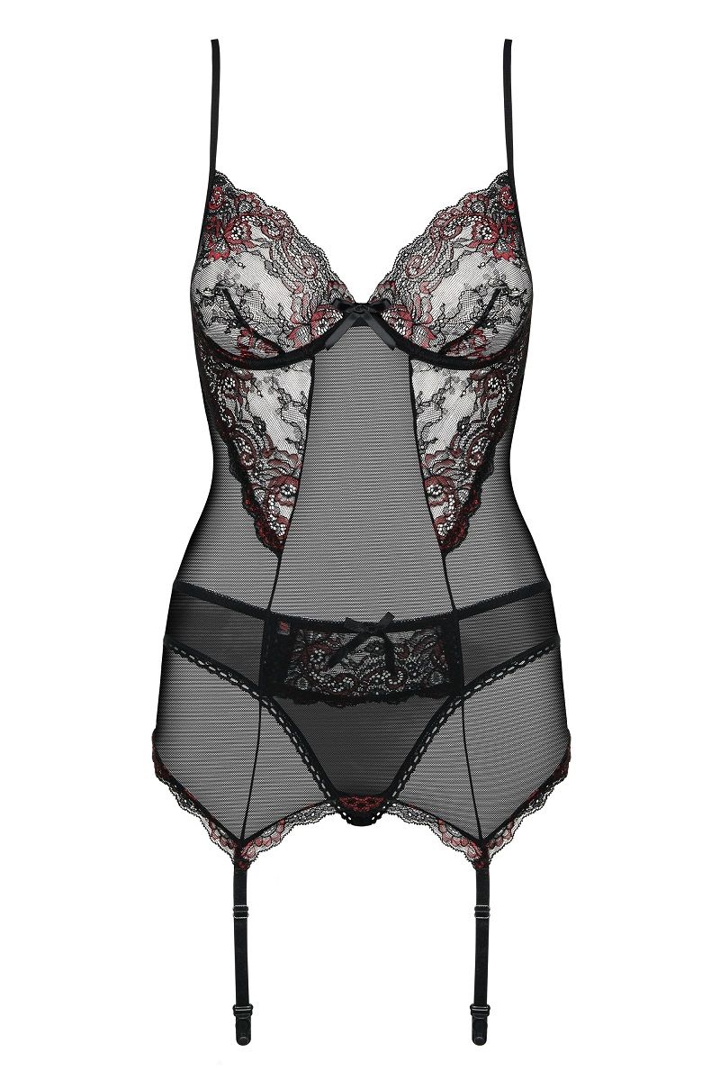 Полупрозрачный корсаж Musca с бордовым кружевом. Подчеркивает все изгибы стана. Трусики из такого же материала в комплекте. В комплекте: корсаж, трусики-стринги.
