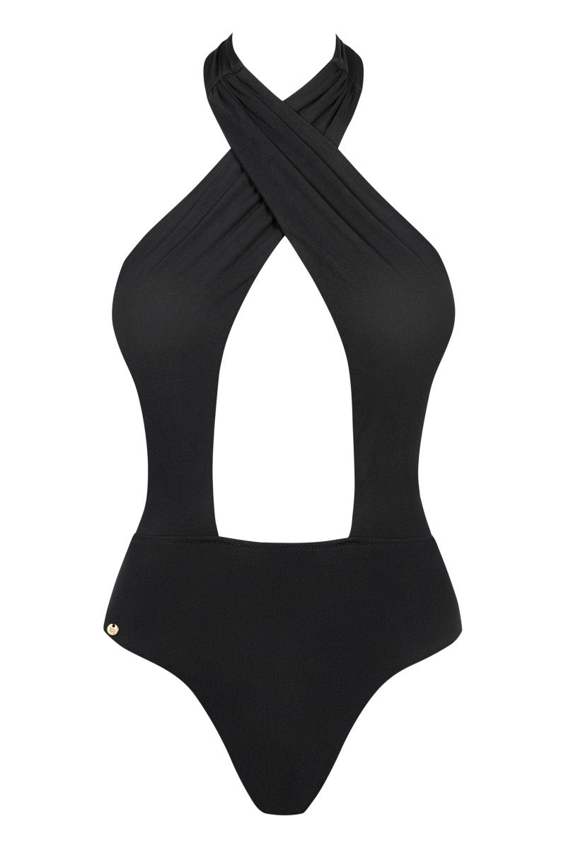 Слитный купальник может быть гораздо сексуальнее раздельного. Если речь идет о такой модели как Acantila. Полностью обнаженная спина, трусики с открытыми ягодицами, переплетение широких лент через грудь с завязкой на шее. Фантазия уже рисует, как рука развязывает этот атласный бант, предоставляя взору еще больше прелестей. Купальник подчеркивает все достоинства фигуры: линия живота закрыта плотной тканью, ленты на груди формируют красивую ложбинку, высокие вырезы по бедрам визуально удлиняют ноги.