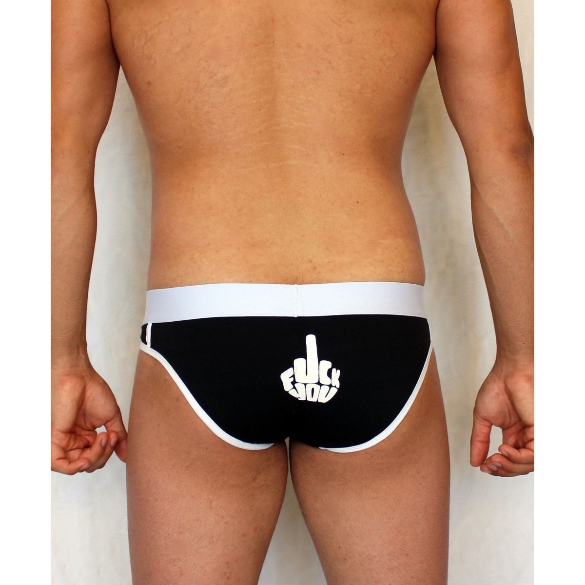 Черные трусы-слипы с провокационным принтом на задней части.
