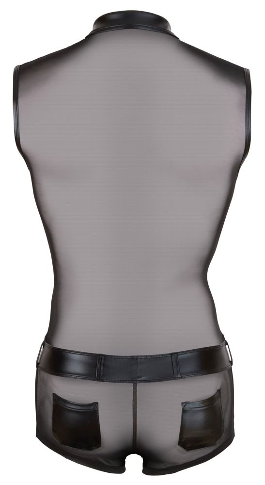 Сексуальный полупрозрачный комбинезон с кармашками. Ворот на кнопках. Имитация пояса. Молния на трусиках.