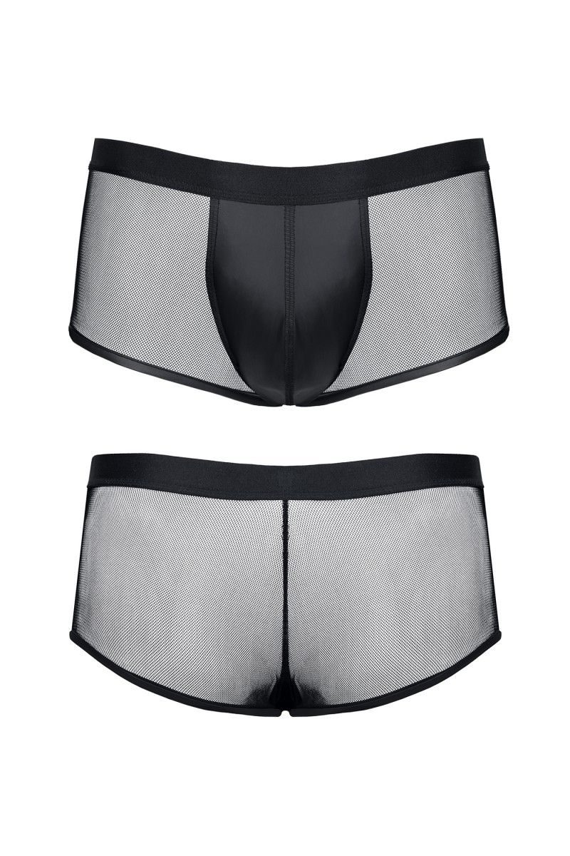 Мужские трусы-шорты выполнены из эластичной сетки, приятной на ощупь, спереди вставка из эко-кожи. Высокое качество материалов и пошива - комфорт на высшем уровне.