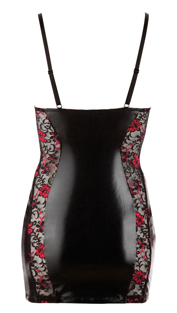 Облегающая сорочка из wet-look материала и цветочного кружева. Регулируемые бретели.