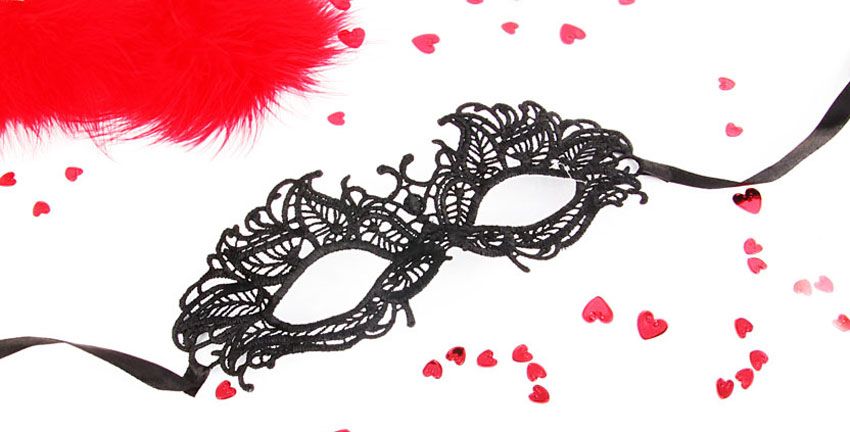 Создайте таинственный образ, где вы будете играть роль неприступной, но очень яркой обольстительницы. Ажурная маска на глаза не скроет ваш взгляд, но придаст образу особого шарма.